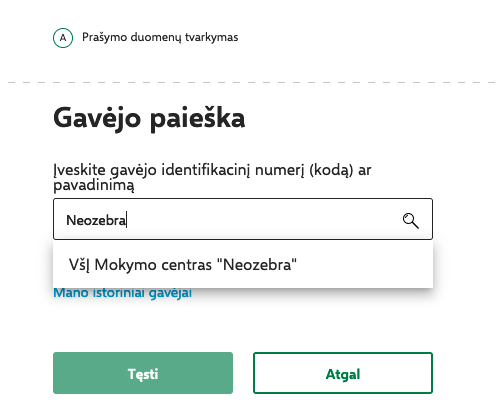 - В поиске введите Neozebra. Выберите: VšĮ Mokymo centras „Neozebra“ (код 304536596).