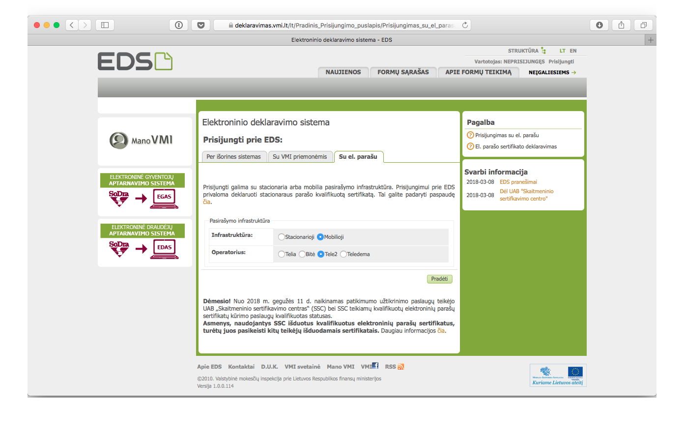 - Перейдите на сайт электронной системы подачи деклараций EDS по этой ссылке. Войдите через Smart-ID, Mobile-ID или банк.